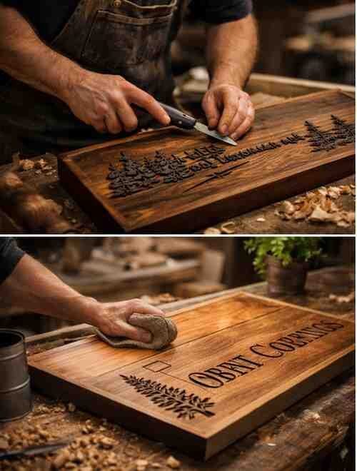 Each sign is carefully shaped, sanded, engraved, and finished by hand.